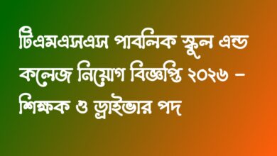 টিএমএসএস পাবলিক স্কুল এন্ড কলেজ নিয়োগ বিজ্ঞপ্তি ২০২৬